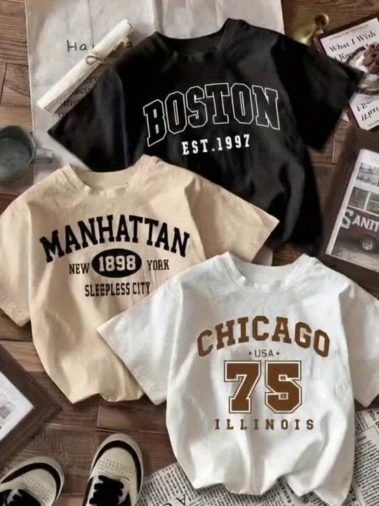 Mother'S Day, Cartoon Love Element Print T-Shirt Three-piece Set, Summer and Spring Short Sleeve Round Neck Casual Top Multi Set, Women'S Clothin