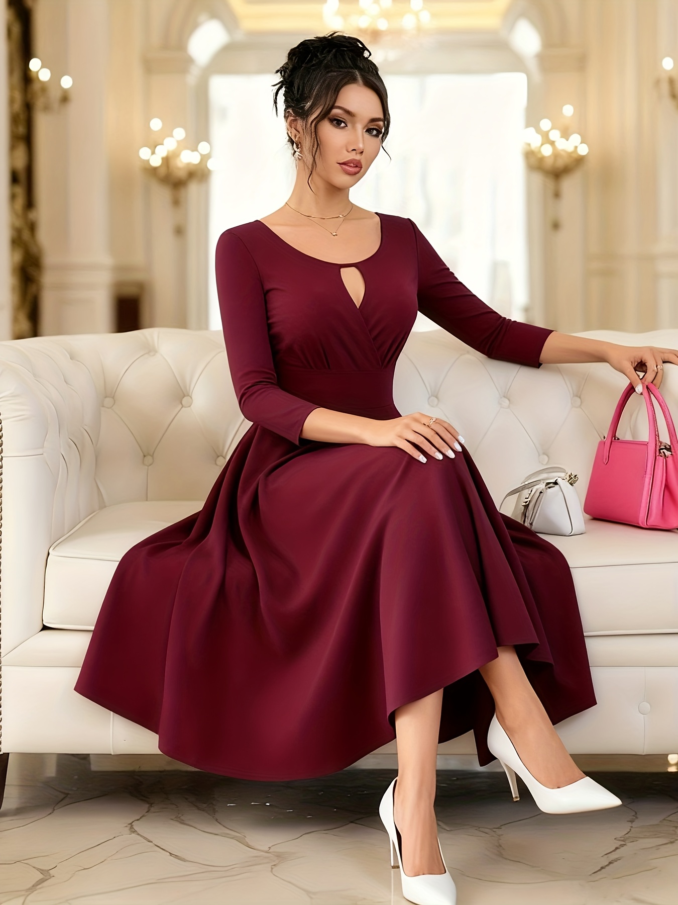 Women's Elegant 50s, 60s, Retro Pleated Wedding Party Date Evening Gown Dress, Fashionable Waist-Cinching Flowy Temperamental Cocktail Lace-Up Backless Aesthetic Longline Maxi