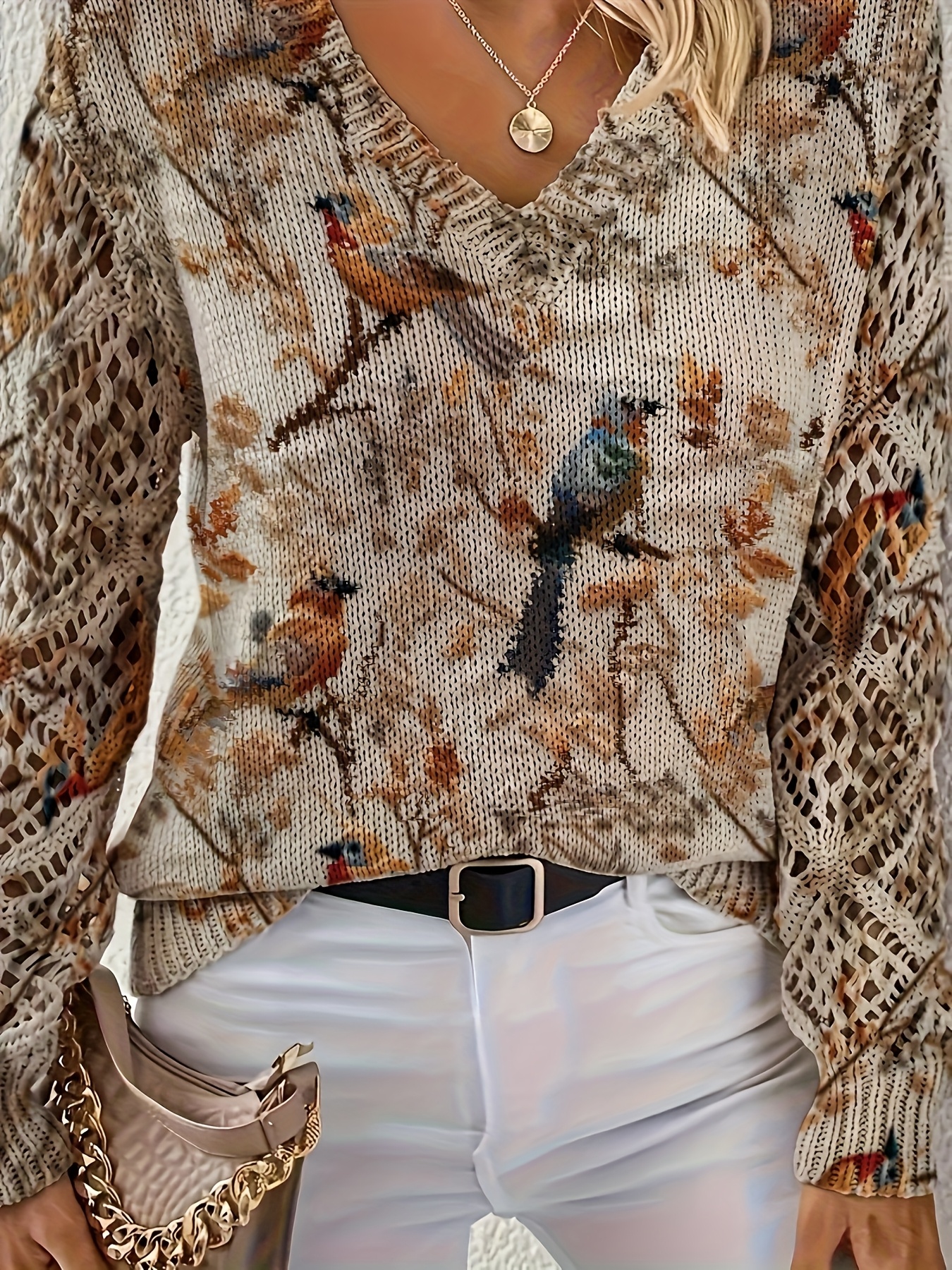 Women'S Elegant V-Neck Sweater - All-Season Long Sleeve Pullover Sweater with Brown/Black/Beige/White/Gray/Blue/Red/Orange/ - Office, Party, Everyday Chic Outfits - Women'S Sweater for Year-Round Wear, Office Attire, Bohemian Style