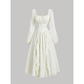 Women'S Elegant White Button-Front dress - Flared hem, Structured office to party Formal Attire, All-Season Chic Outfit for Weddings, Business Meetings & Evening Events, Wedding Guest Attire, Textured Fabric Gown