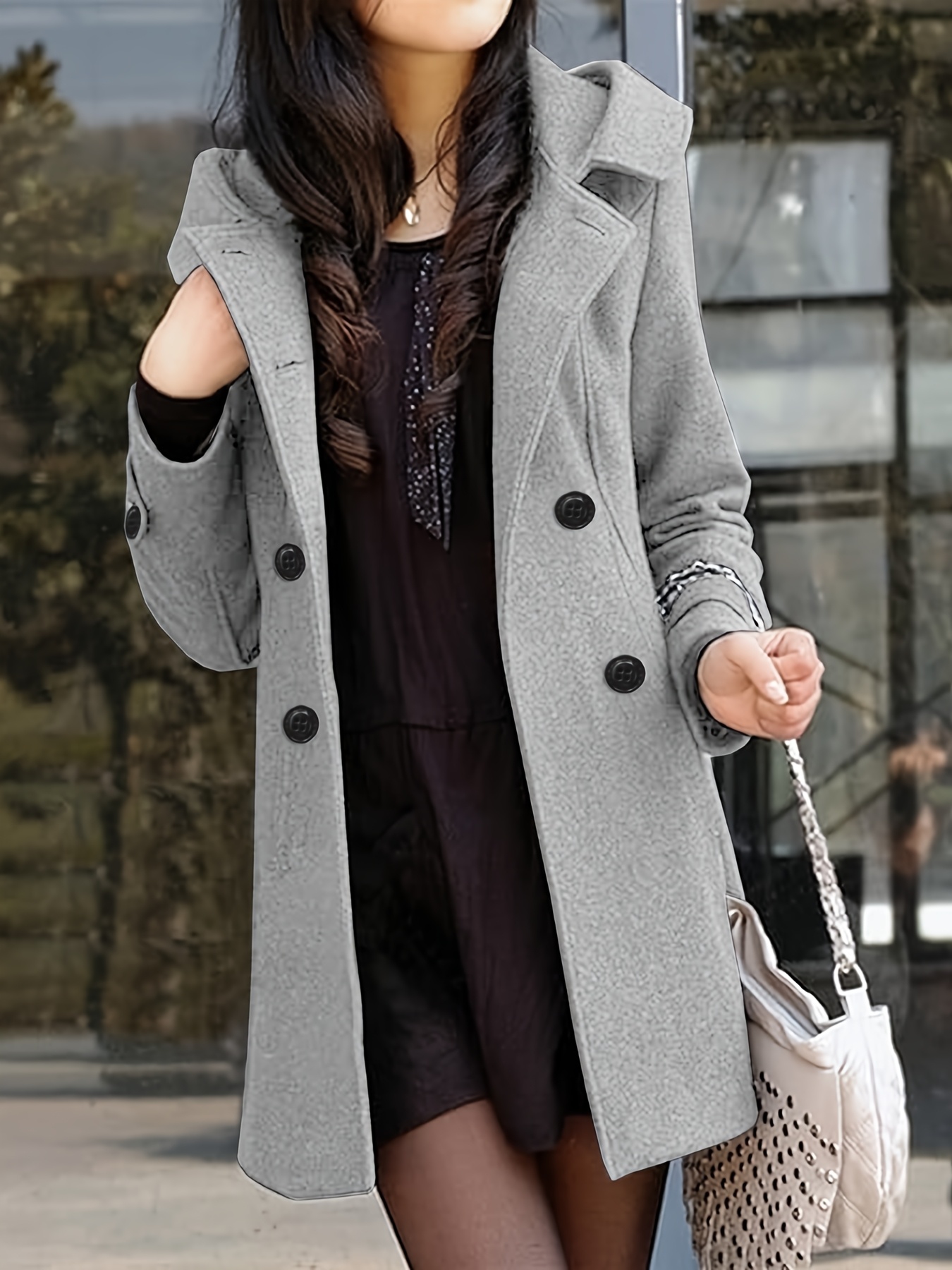 Women's Heavyweight Tweed Coat - Elegant Winter Outerwear, Structured H-Silhouette Long Jacket for Cold Weather, Formal & Everyday Use - Non-Stretch Fabric (Hand Wash/Dry Clean), Ladies Winter Coats
