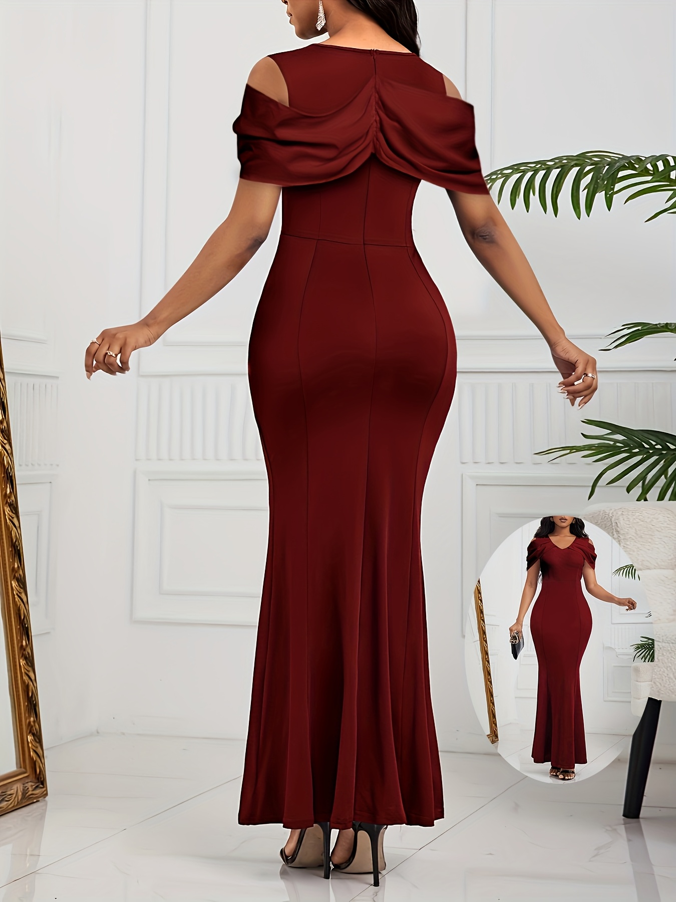 Women's Elegant Formal Evening gown - Rich Red Mermaid party dress, Bodycon fit long Formal Attire with Zipper Back, Machine Washable Wedding & Gala Outfit for Women, Event Attire, Structured Silhouette