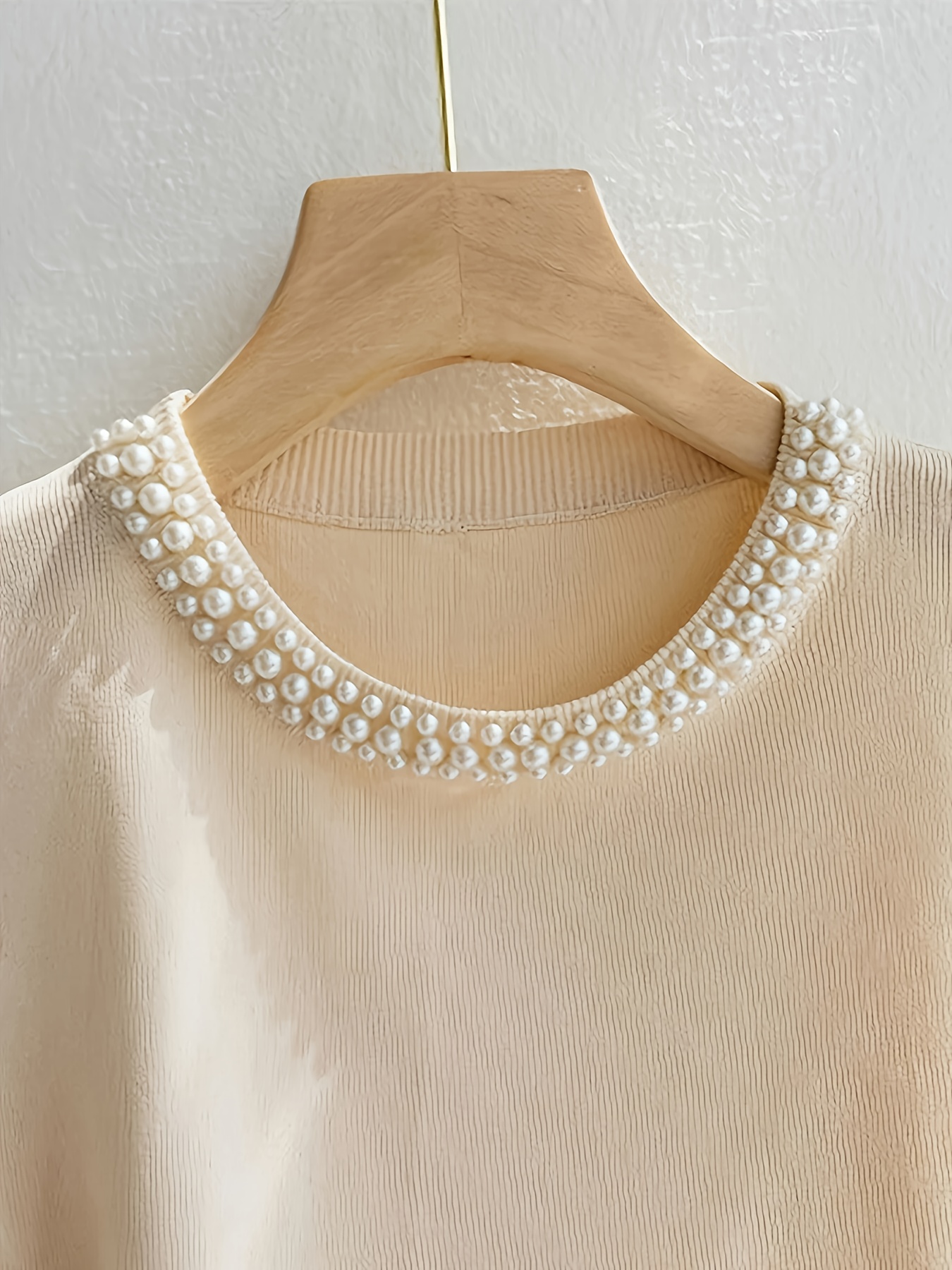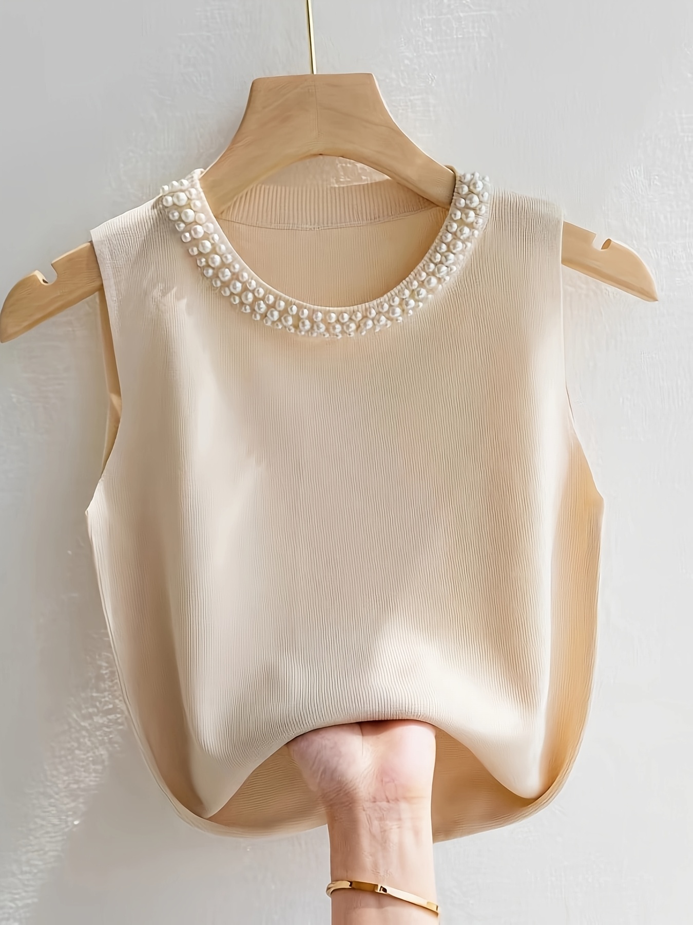 Women'S Elegant Beaded Sleeveless Vest - Solid Color Crew Neck Pullover for Spring/Summer/Fall, Chic Layering Piece with Pearl Embellishments